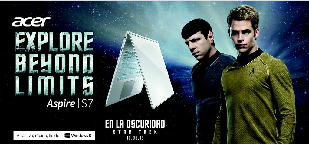 La campaña promocionará la película Star Trek en la oscuridad junto con los productos Acer touch incluyendo a la multipremiada Aspire S7 Ultrabook, la tablet ultra liviana con teclado Iconia W510, la computadora portátil touch Aspire V5 y una revolucionaria notebook que se lanzará a nivel mundial el próximo 3 de mayo.